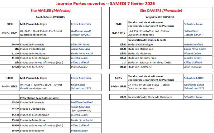 La journée 'Portes Ouvertes' à la Faculté de Santé se déroulera le samedi 7 février 2026.
