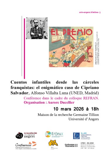 Le 3.LAM vous invite à une conférence dans le cadre de la seconde journée du colloque REFRAN (Récits pour enfants sous le Franquisme), organisée par Aurore Ducellier (MCF de Littérature espagnole contemporaine, Université d'Angers, 3-LAM).