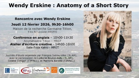 A l’occasion de sa visite à Angers, un entretien avec Wendy Erskine sera enregistré et mis à disposition sur le site de EFACIS (European Federation of Associations and Centres of Irish Studies) et de la revue scientifique Journal of the Short Story in English.