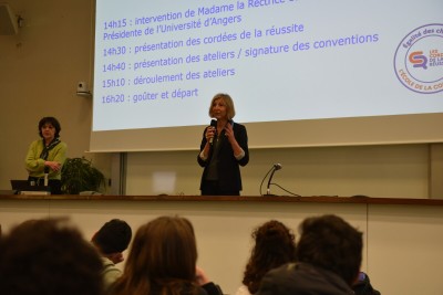 Un premier pas dans l’enseignement supérieur qui en appelle d’autres puisque d’autres temps forts seront proposés tout au long de l’année : visites d’entreprises et d’établissements d’enseignement supérieur, ateliers robotique, immersions dans des cours à l’UA avec l’opération M’essayer c’est m’adopter du 16 au 20 février, sorties culturelles à Angers (Le Quai) et à Paris… La journée s'est terminée par une signature de conventions entre Françoise Grolleau et les chef∙fes d'établissement.