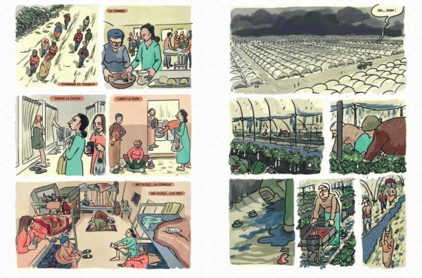 Le livre de la géographe Chadia Arab, Dames de fraises, doigts de fée. Les invisibles de la migration saisonnière marocaine en Espagne vient d’être adapté en récit graphique, par Annelise Verdier.