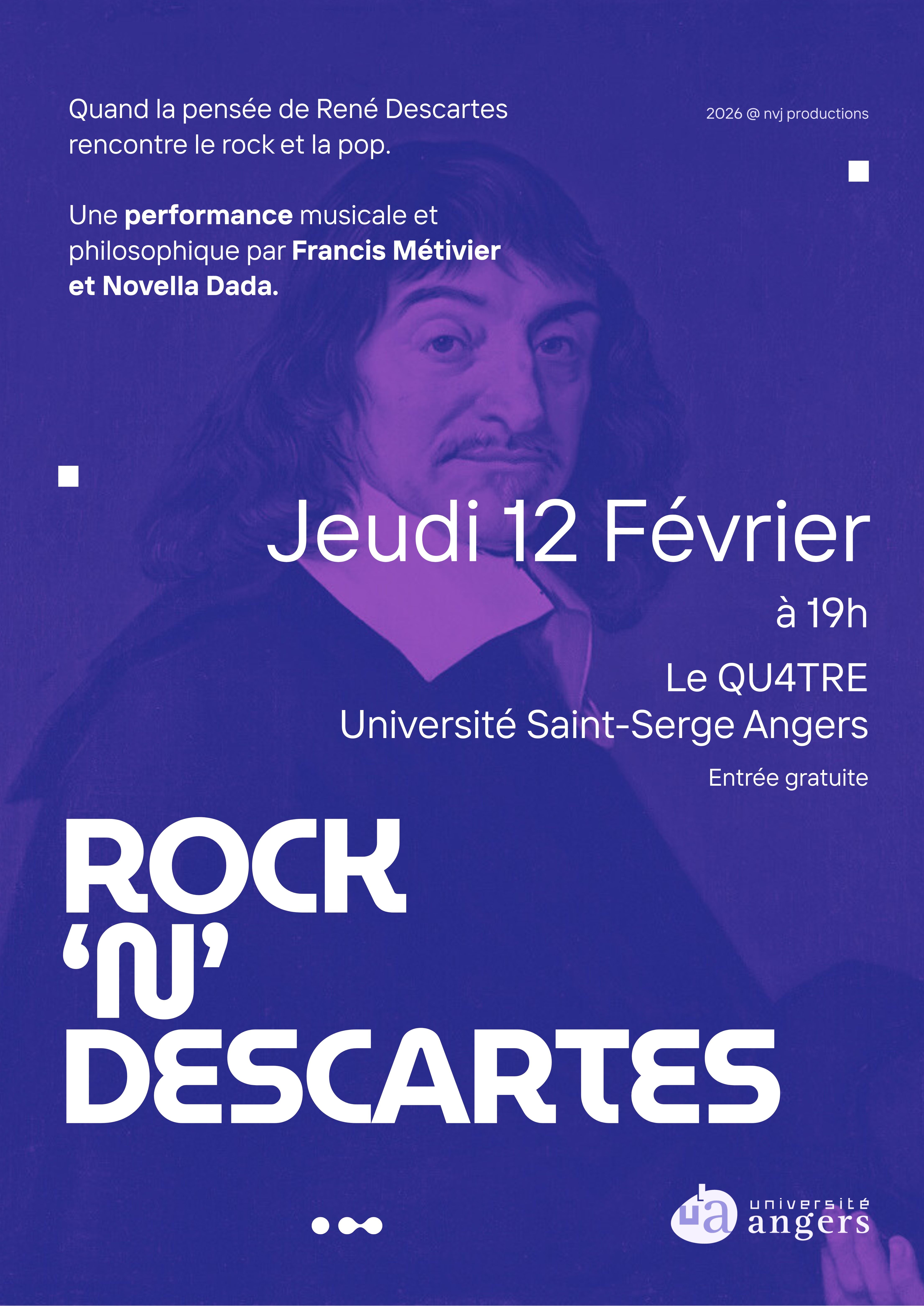 Le Qu4tre accueillera le jeudi 12 février une performance musicale et philosophique "Rock'n'philo" dédiée à Descartes, à partir de 19h.